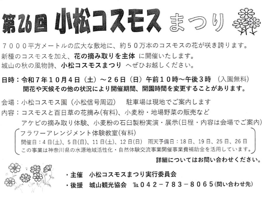 後援 城山観光協会 ℡. 042-783-8065 (問い合わせ先)